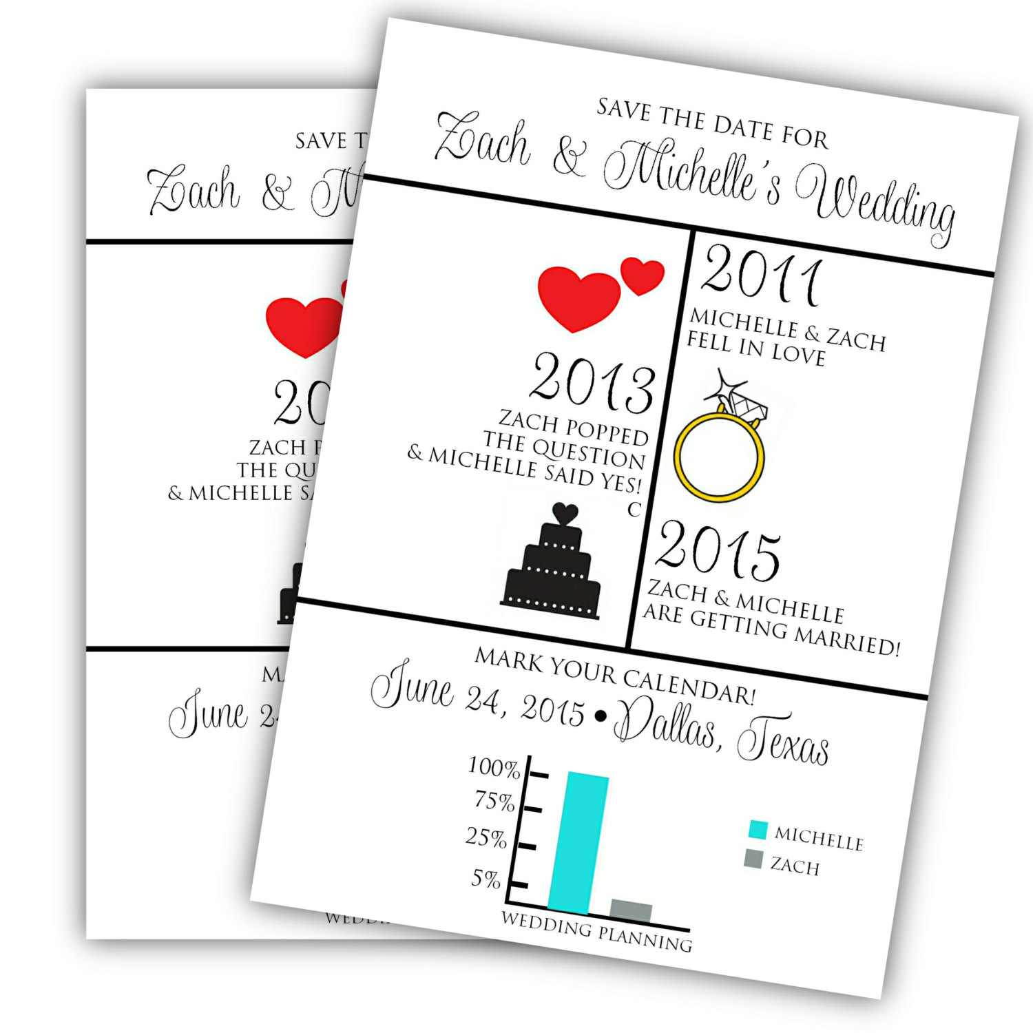 We design it, you print it! These customized wedding save the dates are easy and affordable. Each file is sized at 5x7" and print two per page.