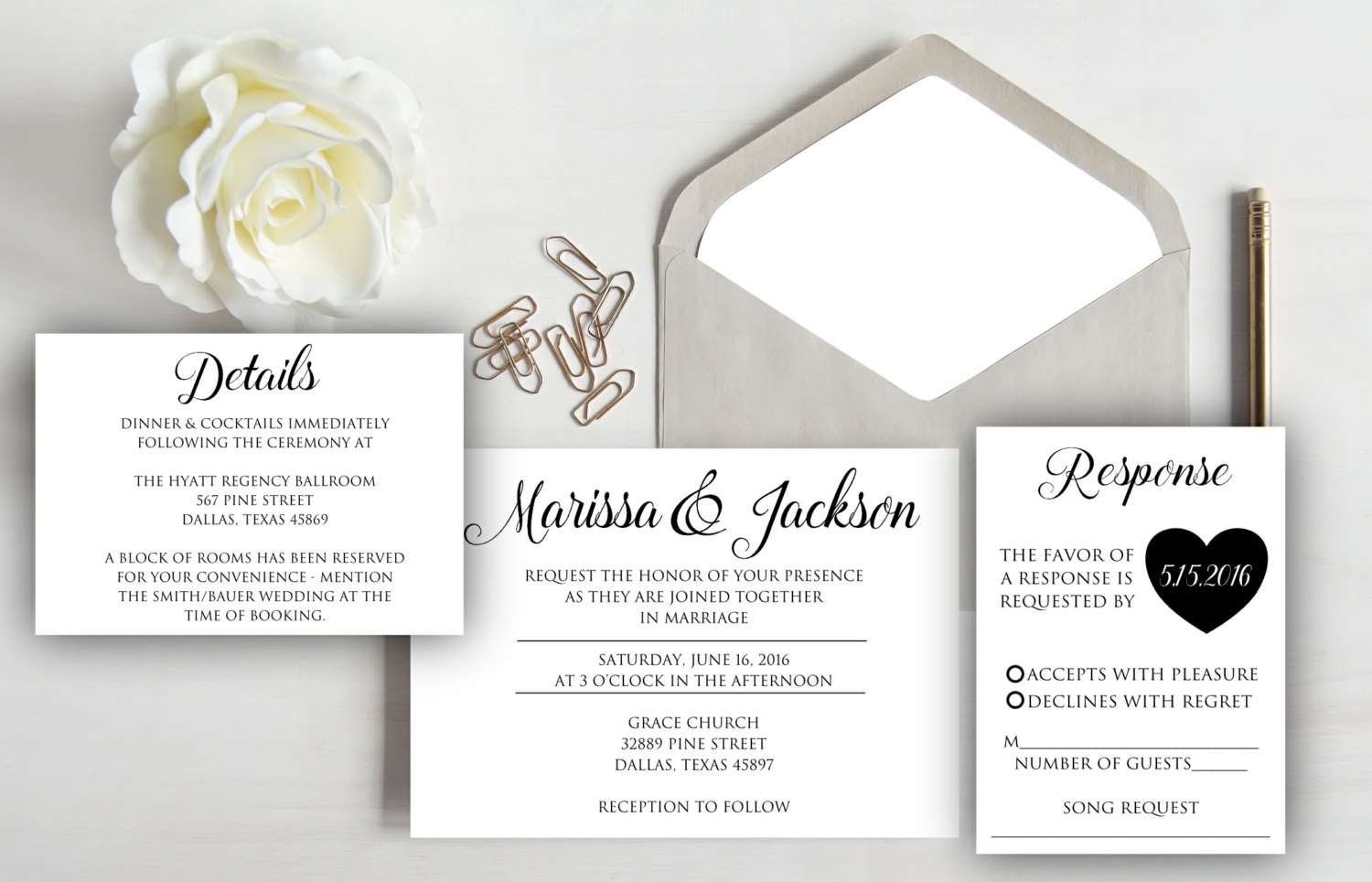 Printable Wedding Invitation - Calligraphy Wedding Invitation - Black &White Wedding Invitation - Black and White Wedding Invitation