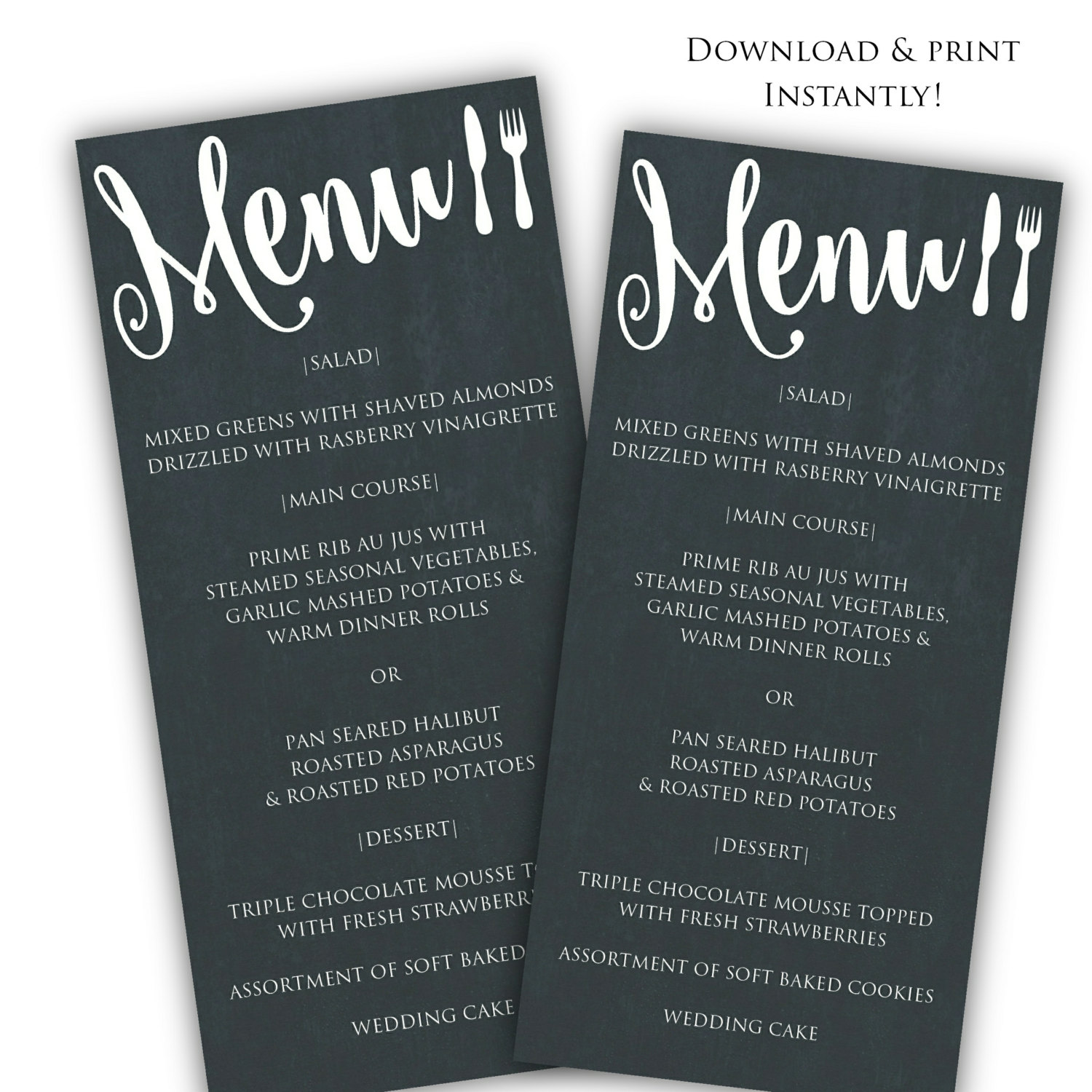 DIY menu template - Printable menu template - wedding menu template