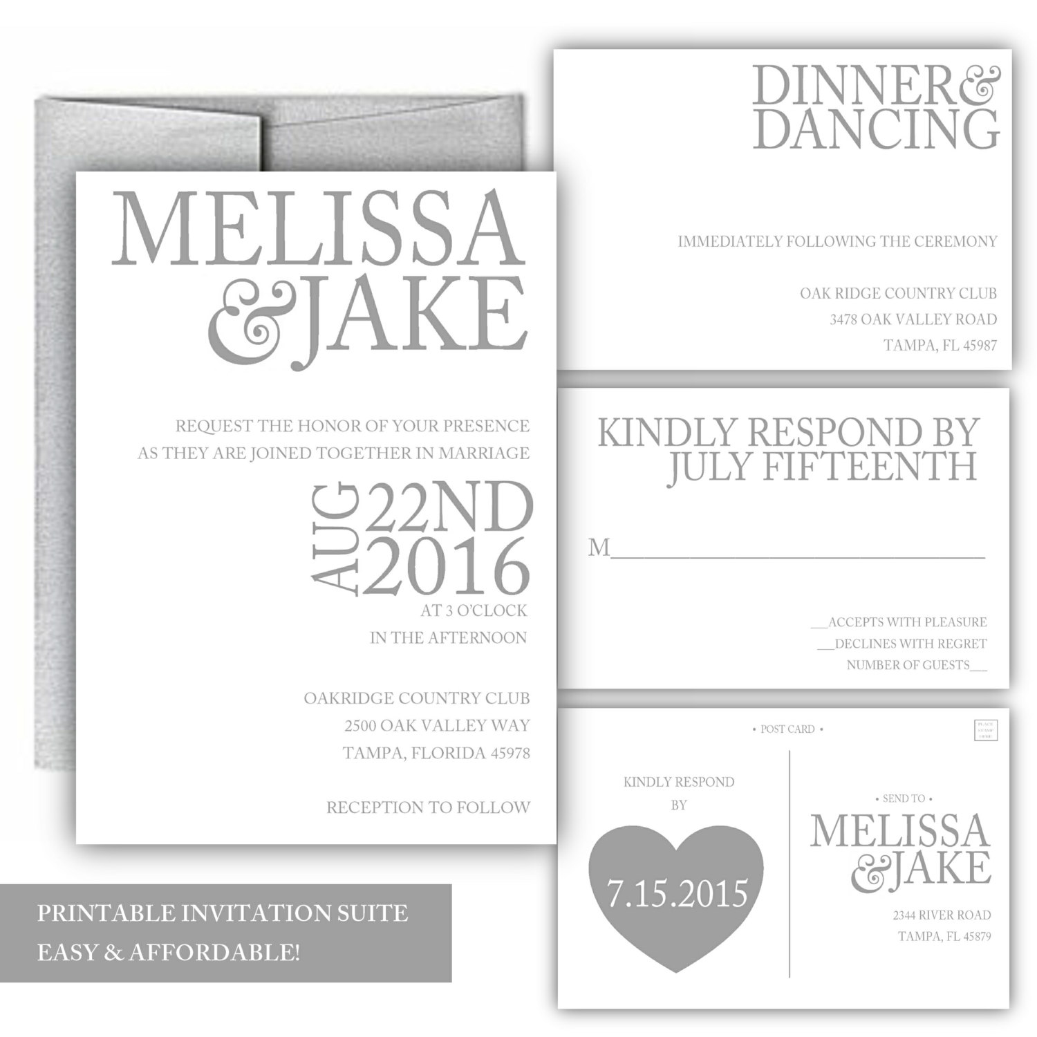 Printable Wedding Invitation - Silver Wedding Invitation - Grey wedding invitation