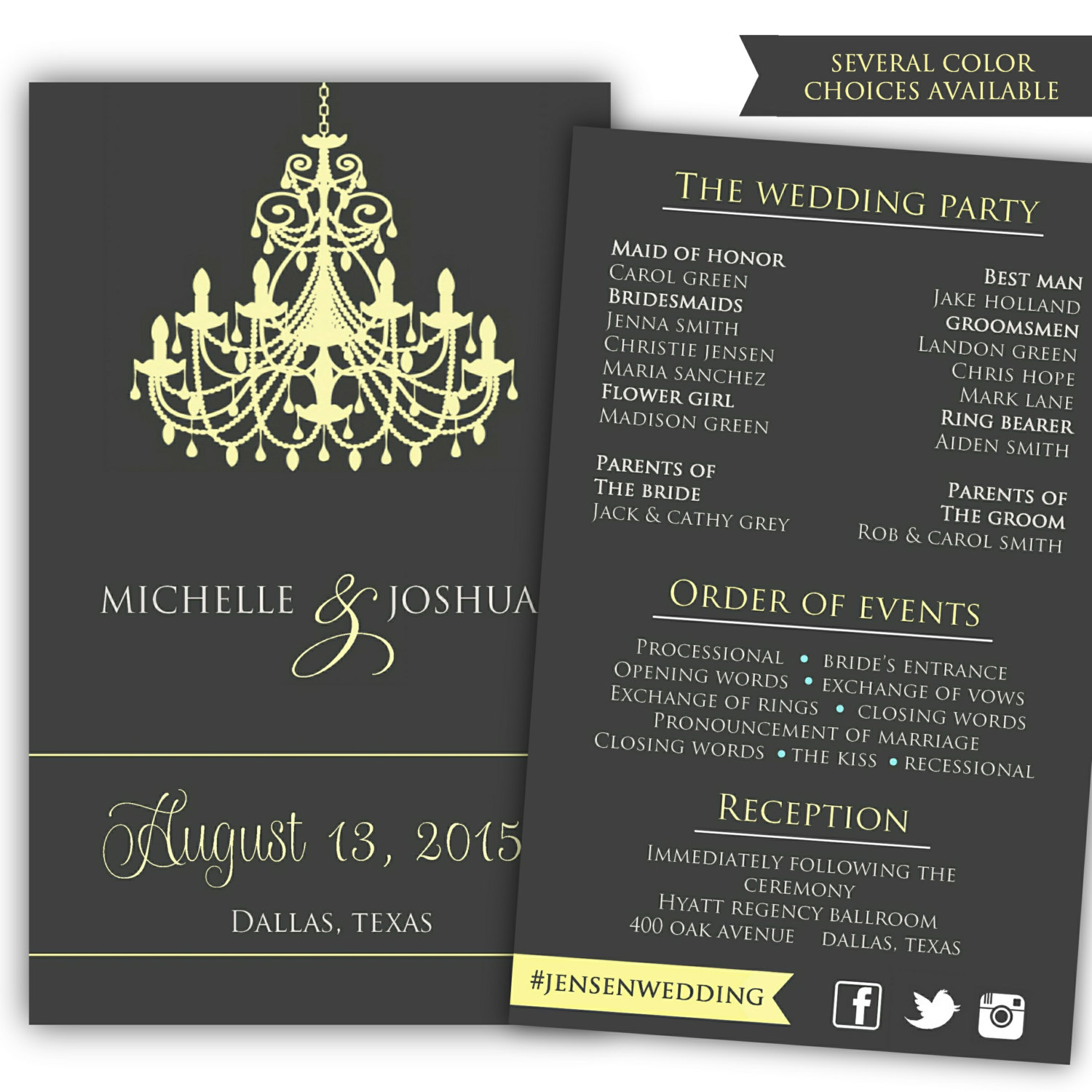 Printable Wedding Program - DIY Wedding Program - Wedding Program Template - Chandelier Wedding Program