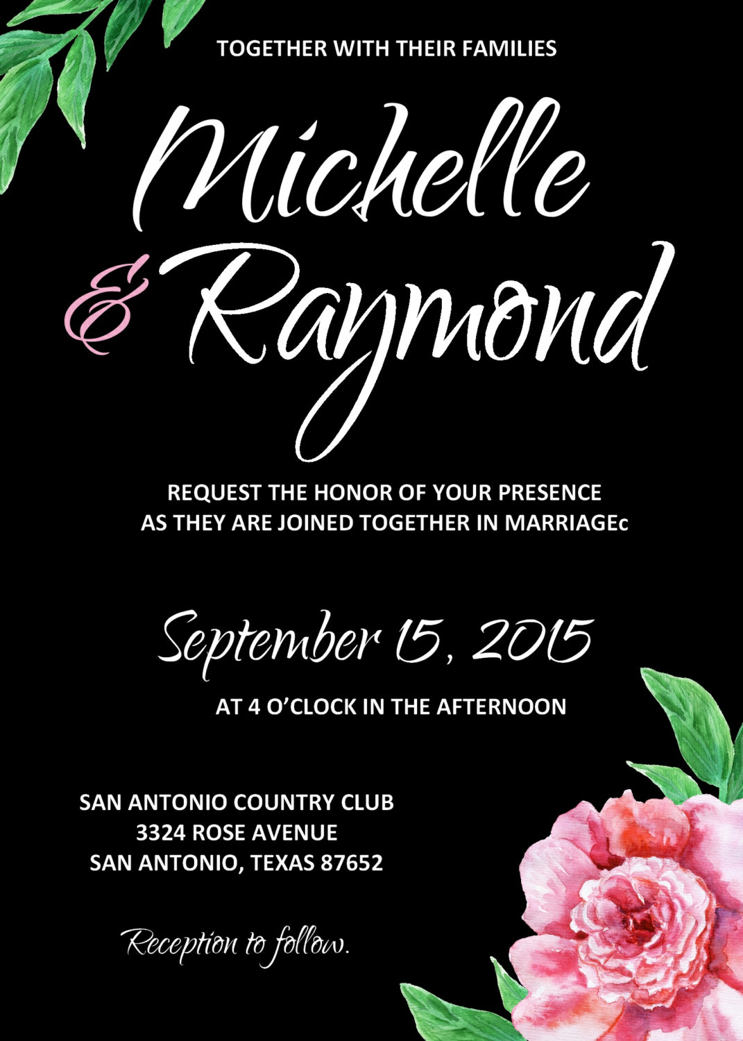 Invitations can be printed from your home printer or you can also send invitations to a print lab or photo lab of your choice, such as Staples, Office max, Walmart, etc.