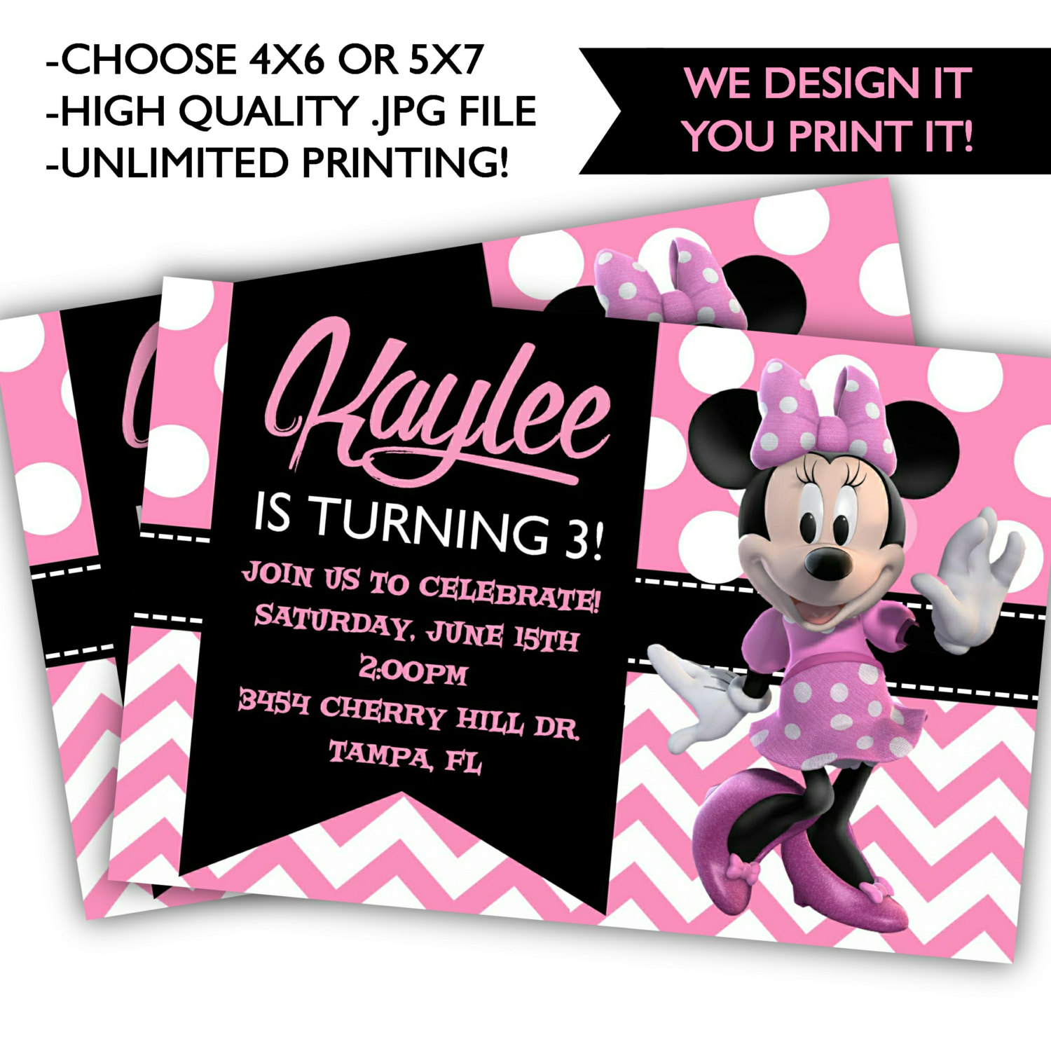 Minnie Mouse Birthday Invitations - Printable Minnie Birthday - Minnie Birthday